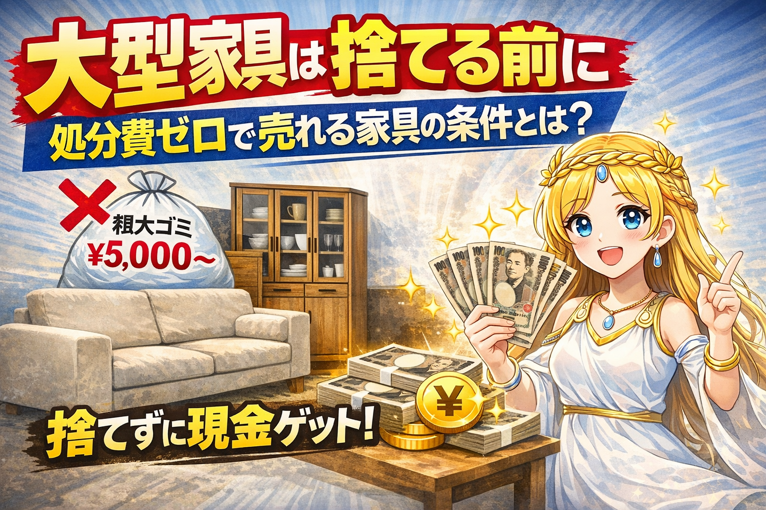 しかし、もしその家具を「売る」ことができれば、処分費用は一切かからず、現金化できる可能性があります。